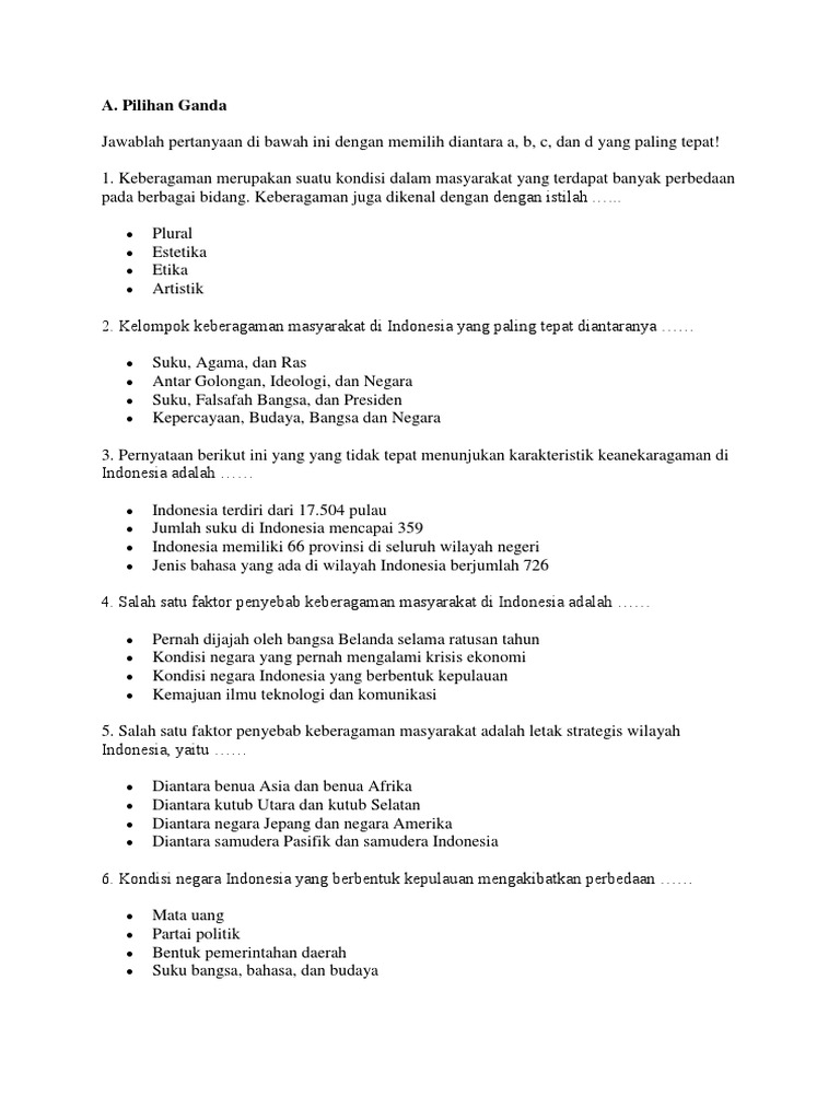 Kumpulan Soal Kelas 9 Persatuan Dan Kebergaman
