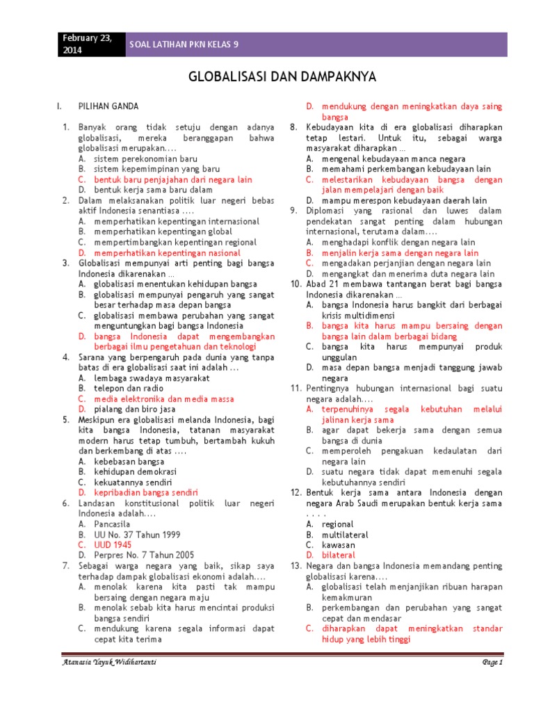 Latihan Soal Jawaban Globalisasi Dampaknya