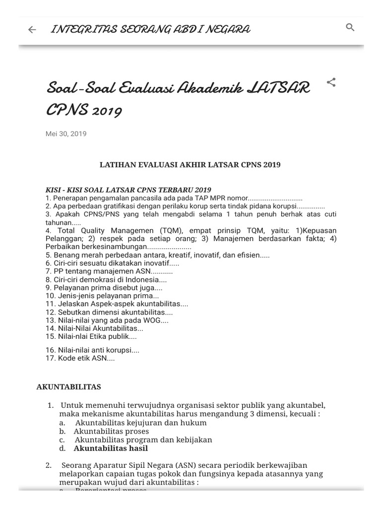 Contoh soal evaluasi akademik latsar cpnsUnknown 13 agustus 2019 0643. Contoh soal latsar cpns soal akuntabilitas diklat sat cpns. Untuk memenuhi terwujudnya organisasi sektor publik yang akuntabel maka mekanisme akuntabilitas 10 PILIHAN GANDA 1.