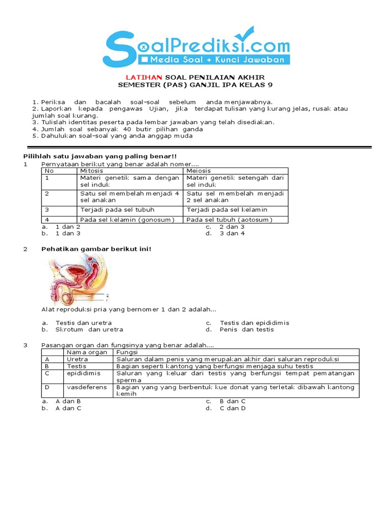 Latihan Soal Ulangan Akhir Semester 1 Ipa Kelas 9 Smp Kurikulum 2013