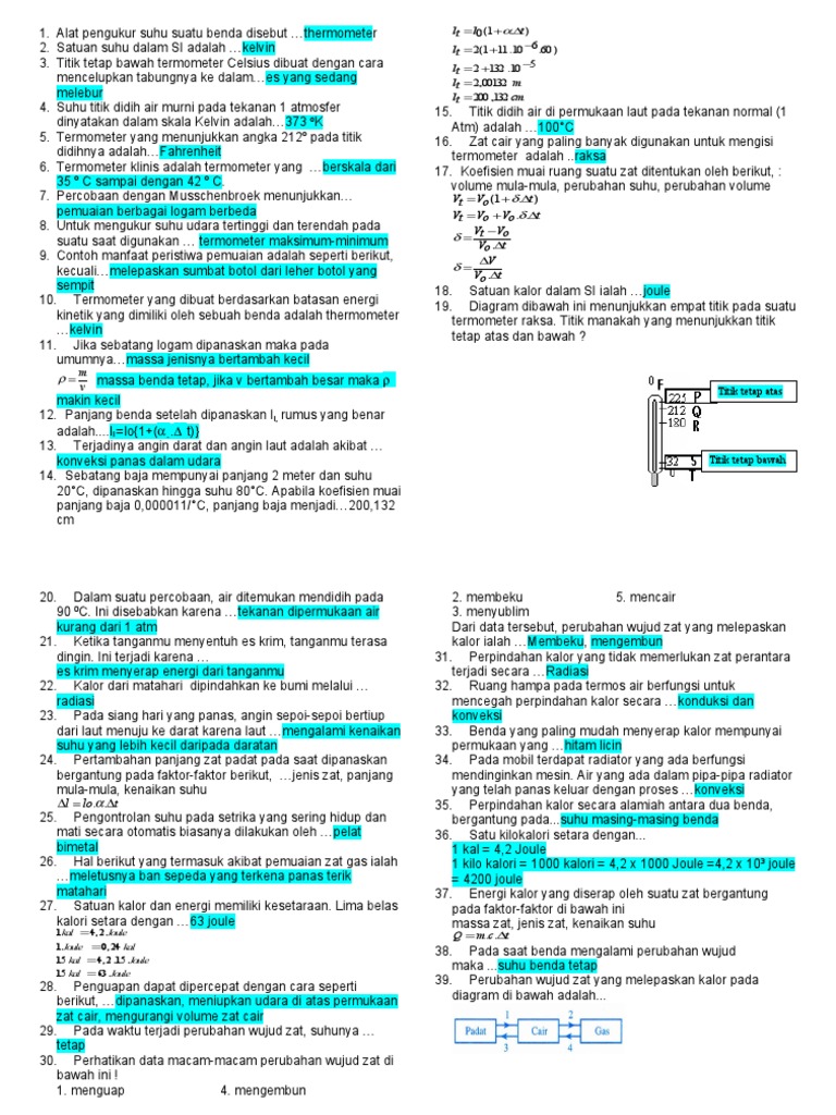 Latihan Soal IPA Suhu dan Perubahannya Kelas 7 SMP Kurikulum 2013 Cara Menentukan Kesetaraan Skala Termometer dan Contoh Soalnya. RPP IPA SMP BAB SUHU DAN PERUBAHANNYA Azizatul Zainia Download PDF Download Full PDF Package This paper A short summary of this paper 25 Full. Download dan kerjakan soalnya.