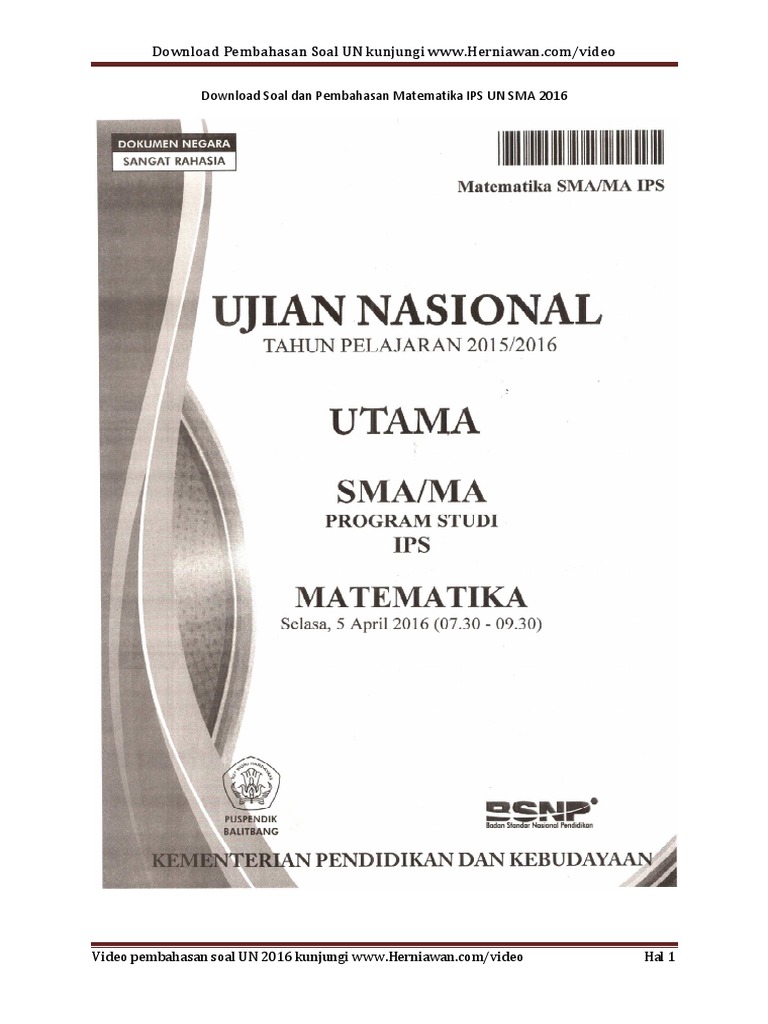 Soal to prediksi soal ujian nasional un sma smk ma jurusan ipa ips 2016 soal prediksi un matematika sma ipa 2016 kunci jawaban download soal prediksi un bahasa indonesia sma ipa 2016 kunci jawaban download soal. Halo guys artikel kali ini gua buat khusus untuk lo yang sekarang duduk di bangku kelas 12 SMASMK dan sedang bersiap-siap menghadapi UN SMASMK. Berisi pdf soal un sma 2016 yang dapat diunduh gratis plus video pembahasan soal ujian nasional untuk semua mata pelajaran yang diujikan di un sma 2016.