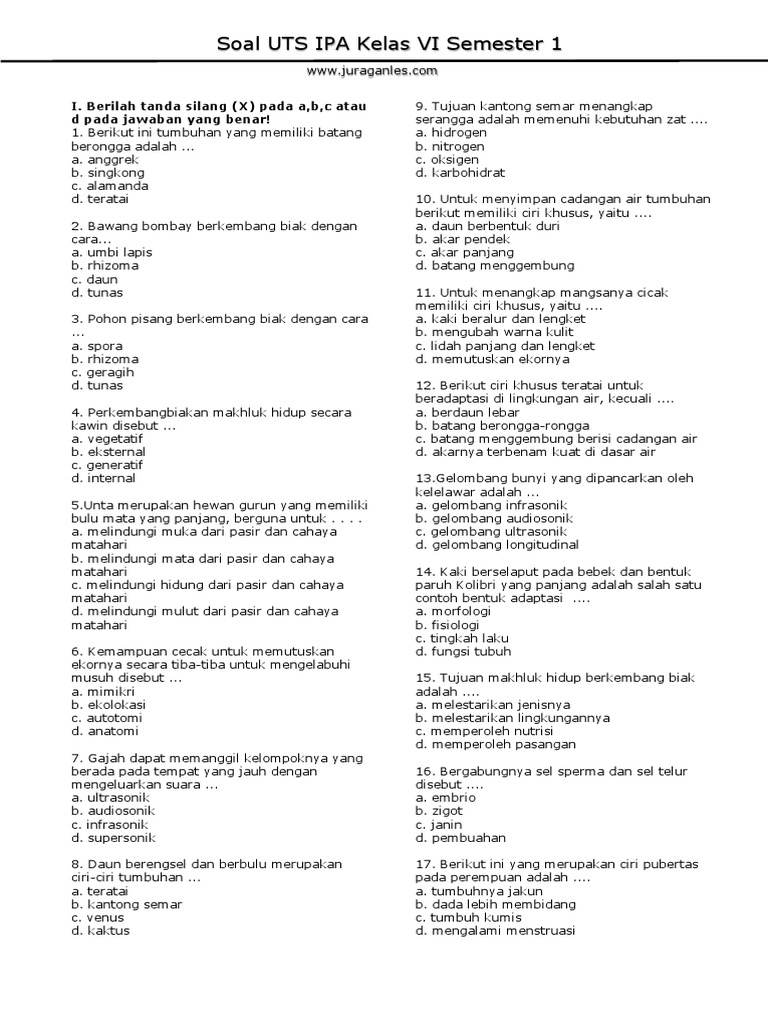 Soal Uts Ipa Kelas 6 Semester 1 Juragan Les