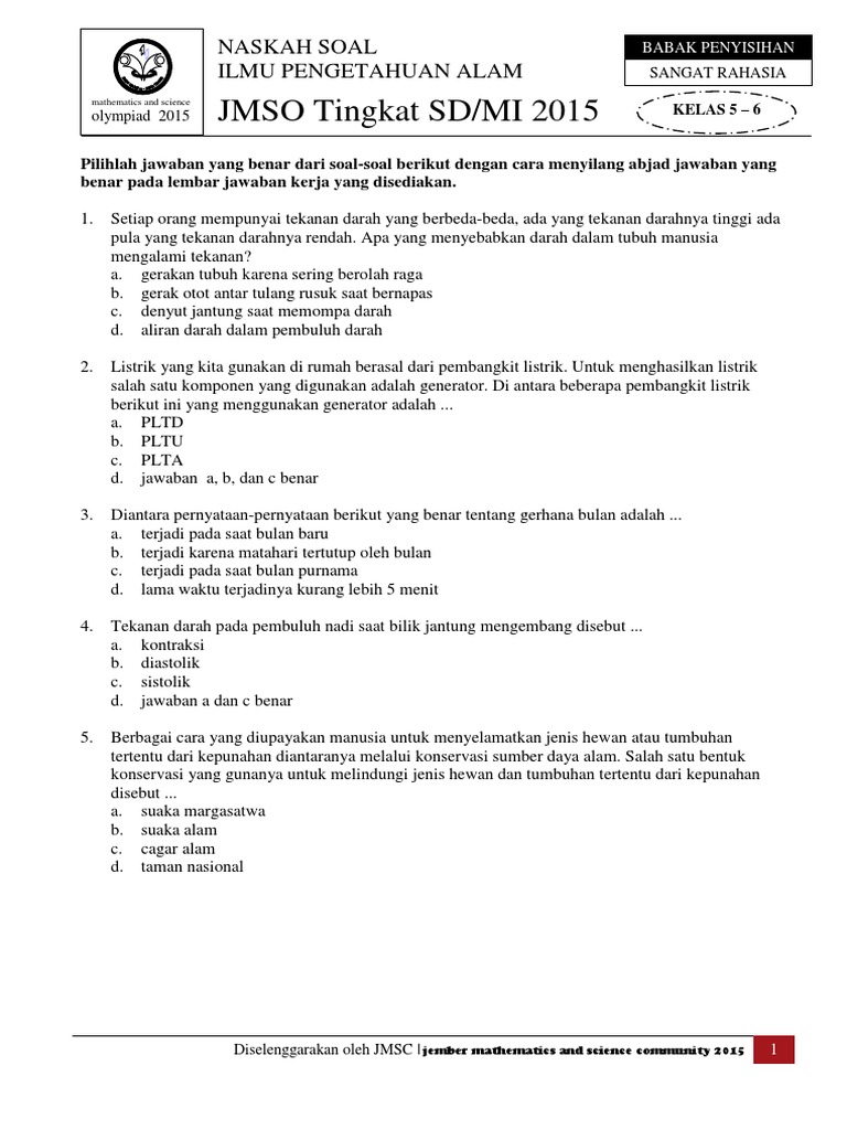 Latihan soal jmso ipa level 3 sd. Soal Babak Peebutan Juara Olimpiade Matematika PHI 2018. Soal Babak Perebutan Juara PHI 2018. Soal olimpiade mipa sd 2020Hai sobat kembali lagi dengan topik baru yaitu osd sd.