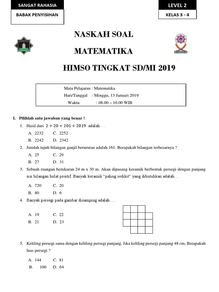 Naskah Soal Babak Penyisihan Phi Olimpiade Matematika 2018 Tingkat Sd Mi Level Iii Se Jawa Bali Hari Tanggal Minggu 26 Agustus Pdf Free Download